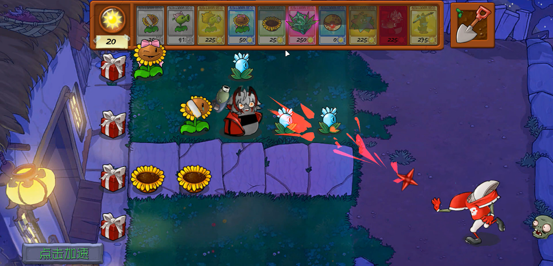 对有防具的僵尸造成30 + 防具当前血量*0.2 的伤害