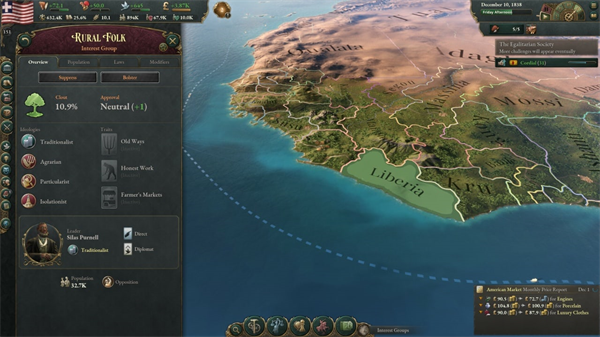 政治是Victoria 3的核心,所有主要功能都或多或少与构成游戏政治核心的人口与利益团体有所关联。