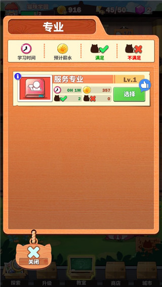5、当学习完毕后就可以开启考试,最后会根据考试的得分来为猫咪安排工作。