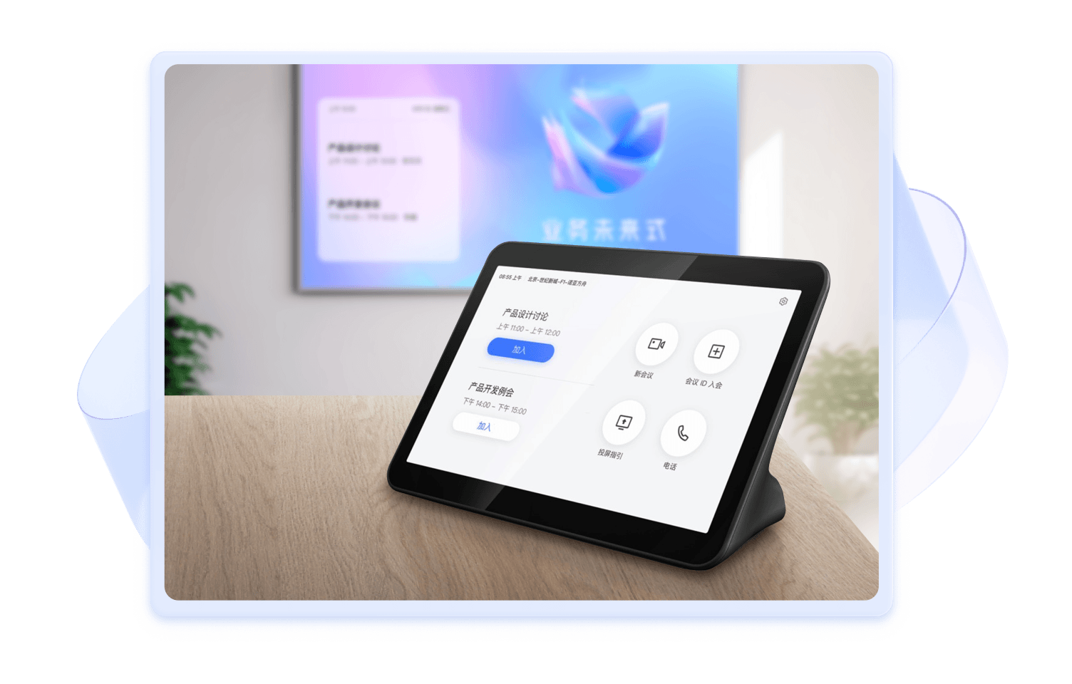 无线投屏,一键共享文档、应用、桌面等内容到会议室大屏。