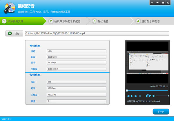 8、选择输出目录和视频参数后,点击【下一步】就可以了