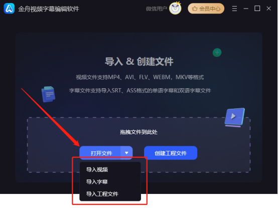 用户可以直接导入本地视频,本地字幕和工程文件(.jzzm)进行编辑。