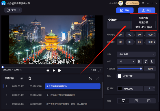 提供SRT、ASS、XML+PNG序列等多种字幕格式,同时支持多种视频导出格式。