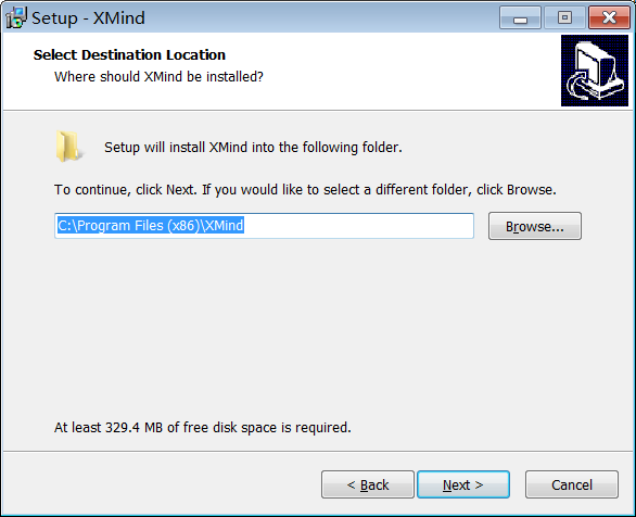 4、选择软件安装位置目录,勾选C:\Program Files (x86)\XMind,修改点击browse按钮,点击next