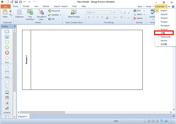 安装结束后,打开软件,点击“language”(语言)中选择简体中文即可,随后按照提示窗口点击“ok”重启软件