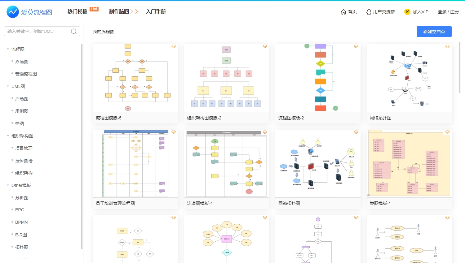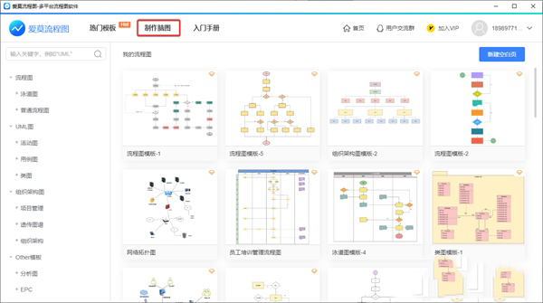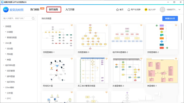 爱莫流程图提供有丰富的模板可供使用,普通流程图、泳道图、UML图、组织架构图等多种图形模板任意使用。