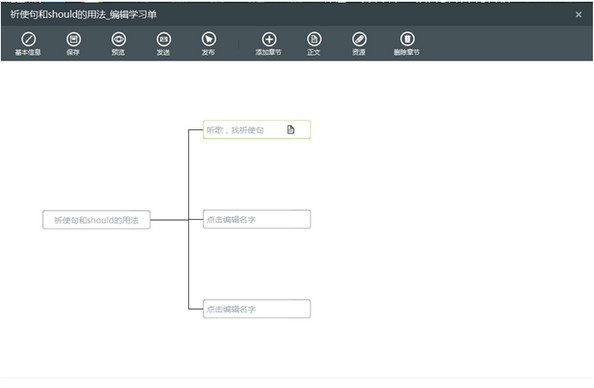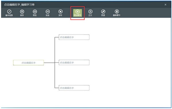 在新建的学习单窗口,点击“添加章节”按钮,点击一次就会创建一个章节,并自动按照向右导图结构排列