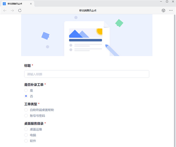 员工可以通过工单短链自助提交工单。例如,员工有IT报修的需求,专家可以预设好不同类型IT故障的工单模板,根据不同模板生成对应的工单短链,并预设好工单流转流程等基础设置。之后将短链设置为单轮问,可添加到导航中。员工更加提示自助提交工单,且通过这样形式提交的工单可以关联企微员工身份。