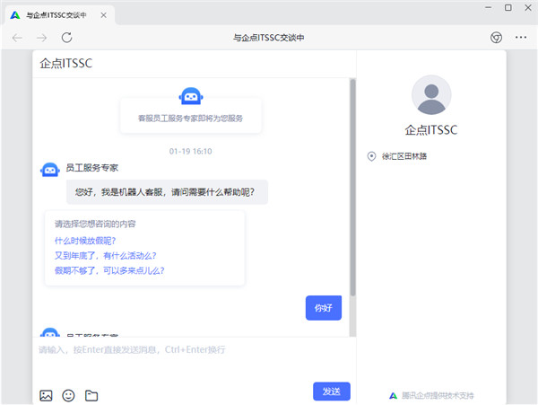 SSC新增WebIM接待能力,企业通过部署H5组件的能力,将咨询入口拓展APP、公司内网、公众号等入口,增加企业触点。员工可使用企业原生咨询也可以选择网页咨询。