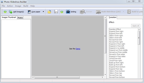 16、提供4种输出模式:Build SlideShow(EXE),Build SlideShow(SCR),Build to video(AVI,WMV,MPEG),刻录到CD;