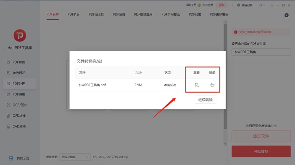 4、文件转换完成后,点击“查看”就可查看合并后的文件,如果有需要,还可以选择“继续转换“哦~。