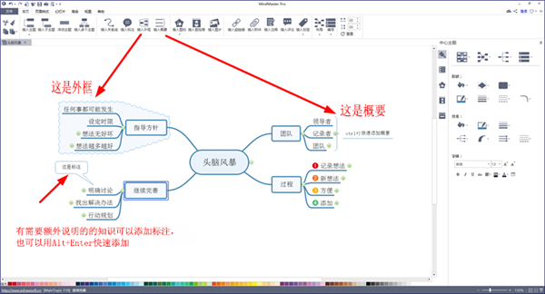 丰富的功能给您更多发挥空间。您可以添加边框、标注、概要、插入关系线、注释、评论、标签、超链接、附件等等,还有大量剪贴画,让您的思维导图不再单调。