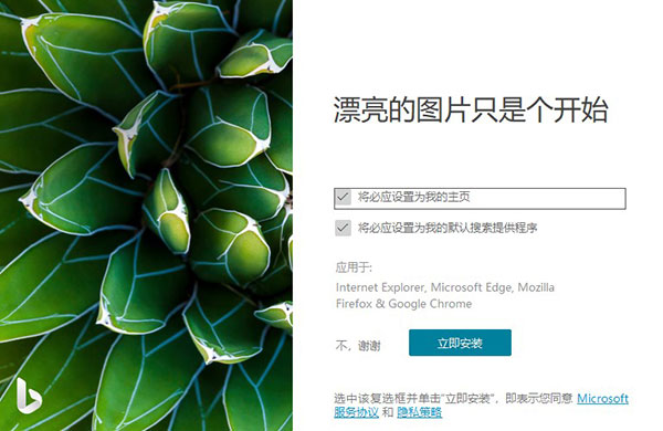 4、虽然该应用程序的整体质量是一流的,但我们不得不提到一个事实,即该应用程序基于“漂亮的图片仅仅是个开始”的营销理念。更确切地说,当您首次安装该应用程序时,它提供了将 Bing 设置为主页的功能,并且使 Bing 成为浏览器上的默认搜索提供程序(无论您使用的是哪种浏览器:Internet Explorer,Microsoft Edge,Firefox 和 Google Chrome)。