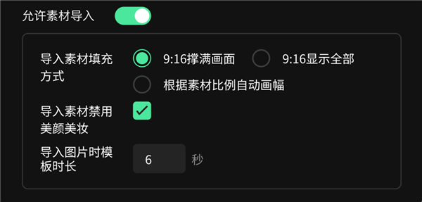 ○ 导入时禁用美颜美妆 :指模板自带的美颜美妆不对导入的图片起作用