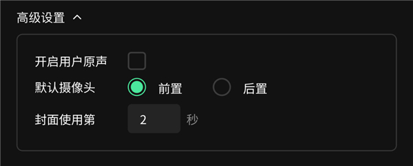 ○ 开启用户原声 :指用户录拍摄时是否保留视频原声