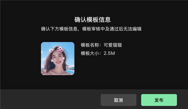 发布模板前需填写模板的基本信息,如果是使用案例模板制作的特效模板,需要修改案例模板自带的模板信息。