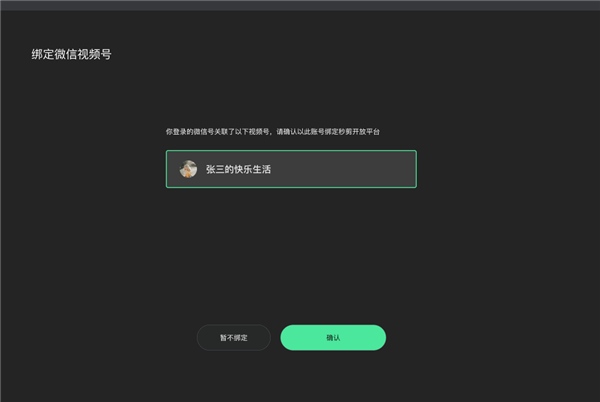 3、个人作者 :绑定个人正在运营的视频号账号即可。
