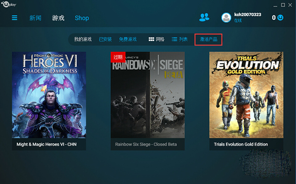 2、将您购买的CDKey入后点击【确定】,将此购买的产品永久绑定在您的Uplay账号下,返回之前的菜单点击左上方的【游戏】