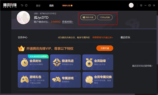2、在“我的”中,可以查看自己的卡劵以及cdkey兑换情况;