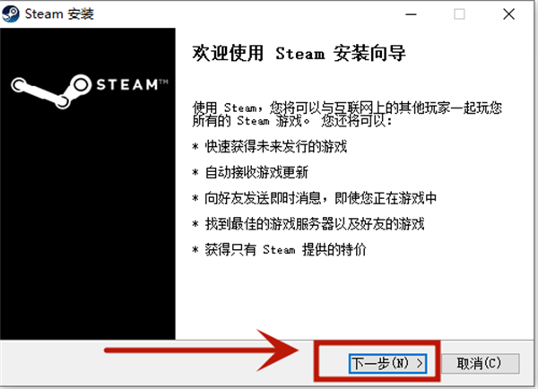 ①解压zip文件后选择SteamSetup.exe进行安装,点击下一步。