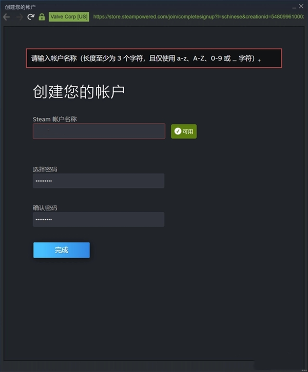 ①Steam的密码格式只需要包括英文字母大写、英文字母小写、数字,其需要包含其中两个,而且长度不能太短,至少需要6~8位数密码,以英文字母开头。