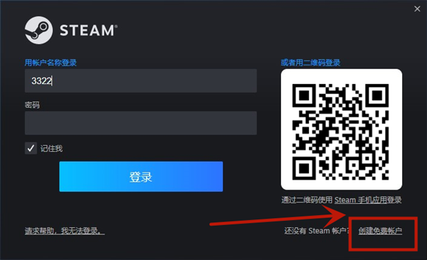 3、安装好后,打开steam,在登录界面,点击创建免费账户。