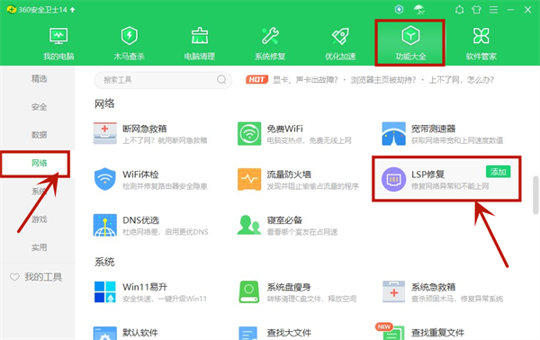 Lsp也会影响玩家的网络,正常连接,玩家可以安全卫士打开网络优化,然后点击lsp修复按钮,帮助玩家一键检测和修复lsp。