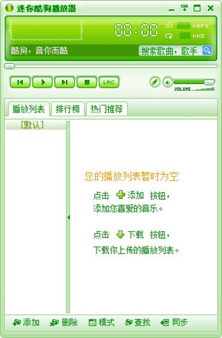迷你酷狗除了支持mp3格式的音乐之外,还支持mp3pro、aac/aac+、m4a/mp4、wma、ape、mpc、ogg、cd、wave、flac、rm、tta、aiff、au等音频格式和多种mod音乐格式。