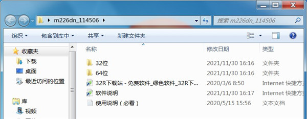 1、从本站下载惠普m226dn驱动压缩包后,将其解压后即可看到32/64位的驱动适配版本;