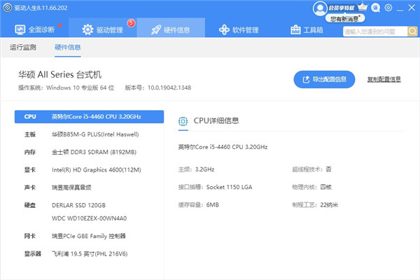 5、精准的硬件检测专业、准确、简单明了的硬件检测,可以轻松的查看电脑各个硬件配置和详细参数