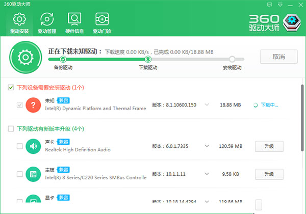 3、360驱动大师将会自动下载并安装。安装完成。