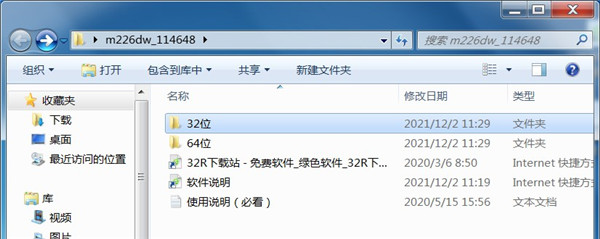 1、从本站下载惠普m226dw打印机驱动打印机驱动压缩包后,将其解压后即可看到32/64位的驱动适配版本;