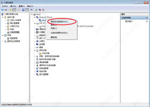 4、点击“adb interface”,右键选择“更新adb驱动程序“;