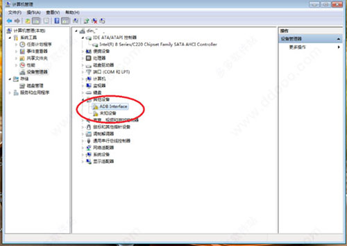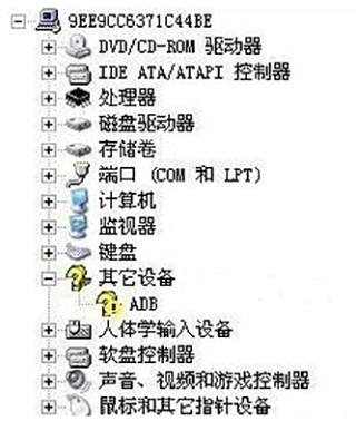3、可以看到“adb interface”这里的显示叹号的,说明adb驱动没有安装;