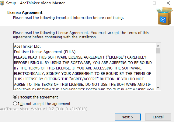 2、双击“AceThinker Video Master v4.8.2.exe”开始安装,选择我同意;