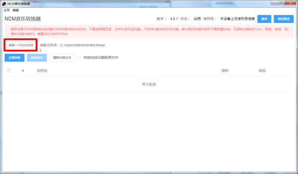 2、待安装完成后打开软件,点击添加电脑中的NCM格式文件