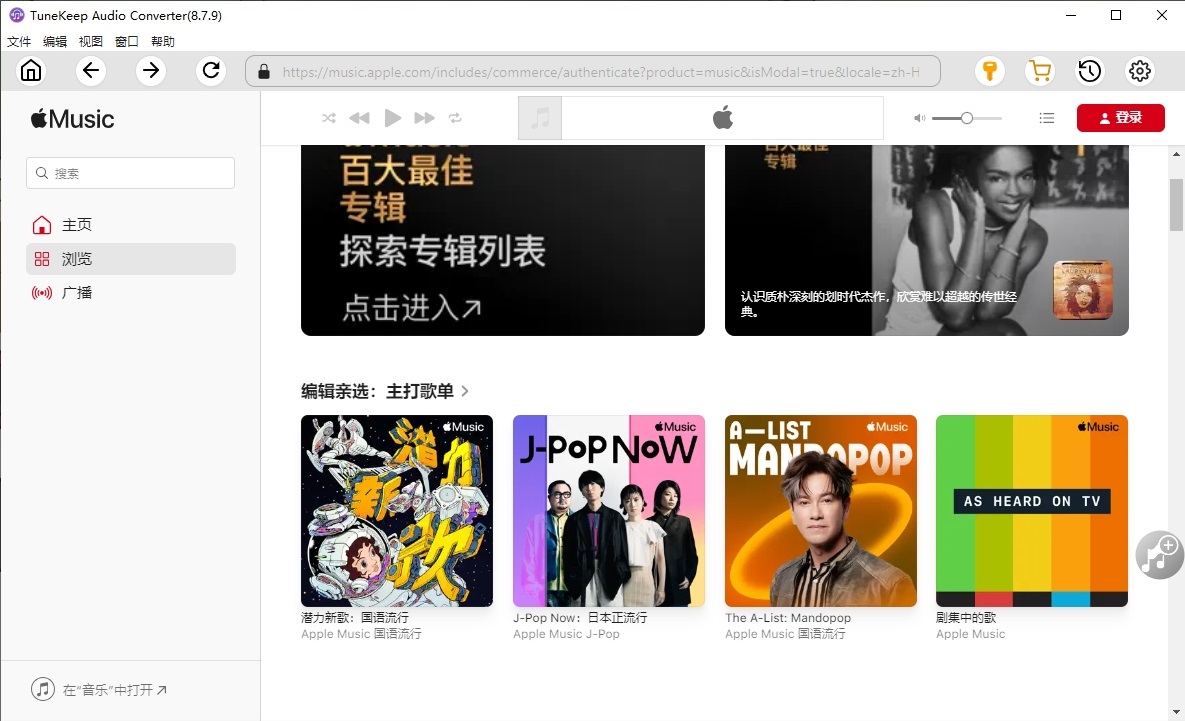 将iTunes资料库中所有已下载的Apple Music歌曲无损转换为高品质的MP3,M4A,AIFF,FLAC,AU,AC3,MKA等。