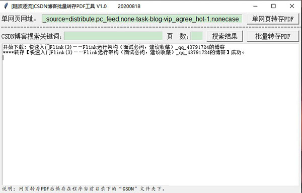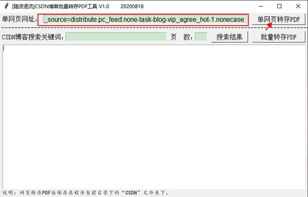 1、单网页转存PDF:可将任何你能看到的单个网页转存为PDF保存。(极个别严格反爬的网页可能转存不成功)2、批量转存PDF:这个功能只针对CSDN博客的页面。需要先设置2个参数。搜索“关键词”和“页数”。批量转存按“关键词”搜索CSDN博客后的结果页(你自定的页数)的所有主题页面。