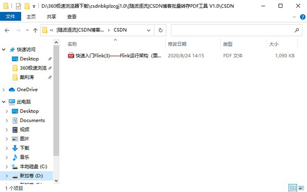 4、输出为PDF文件后,自动存储在程序当前目录下的“CSDN”文件夹。
