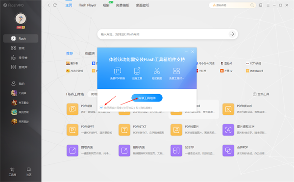 Flash中心核心功能包括内嵌游戏中心、短剧中心、Adobe Flash Player插件,且具备PDF格式转换,自带大量PDF、Excel、PPT、Word模板,各种精选桌面壁纸,保证网页Flash内容运行,并提供一键修复、安全更新及多浏览器适配服务,确保老旧Flash内容的稳定运行。