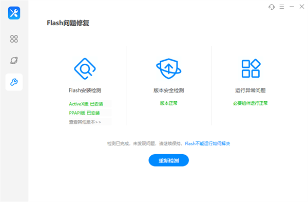 4、等待flash问题监测修复,显示“监测完成,未发现问题”就完成了问题监测。