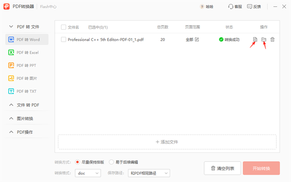 7、两个箭头依次是,打开转换后的Word文件和文件位置,打开文件就可以看到转换后的Word文件了。