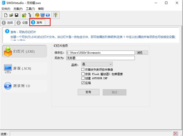 SWiSHstudio绿色版是一款简单易用的Flash文件转换工具,它可帮助用户将SWF Flash文件转换成可执行文件,甚至可将其转换为屏保或直接刻录到CD-ROM上。通过它,您可创建多个可执行文件,可合成多个FLash文件,可创建CD-ROM光盘,同时SWiSHstudio还具有着多种的窗口风格可供用户选择,并且在这里用户恶口自定义创建屏保,并可任意控制大小和位置及增加影片的关联菜单。此外SWiSHstudio的使用方法也十分的简单,仅需“选择”—“设置”—“发布”三步即可完成Flash文件转换