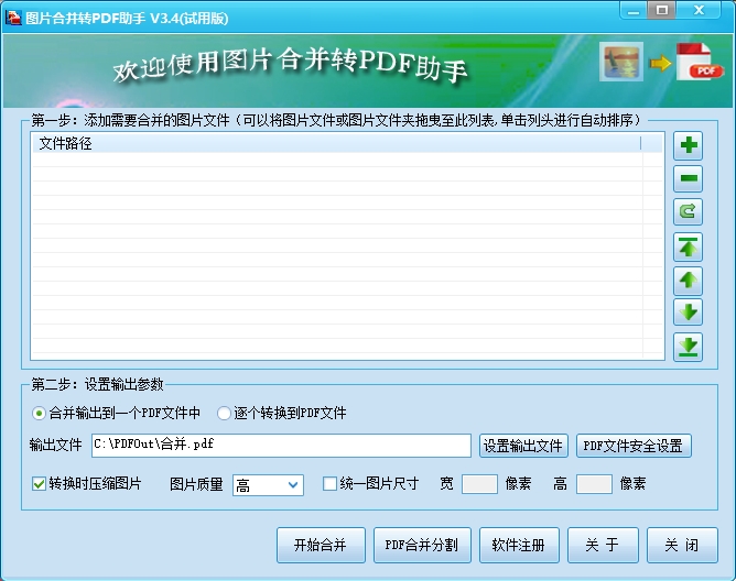 图片合并转PDF助手官方版是一款主要用于将大量图片文件合并并输出为一个PDF文件的软件程序。这款软件的界面设计简洁且易于使用,合并转换的速度较快,运行也相当稳定。它特别适合将扫描的书籍图片文件制作成PDF格式的电子书。此外,这款软件还具有多个PDF合并、PDF分割、PDF页面提取以及批量加密PDF文件等功能!有需要的用户欢迎下载使用。