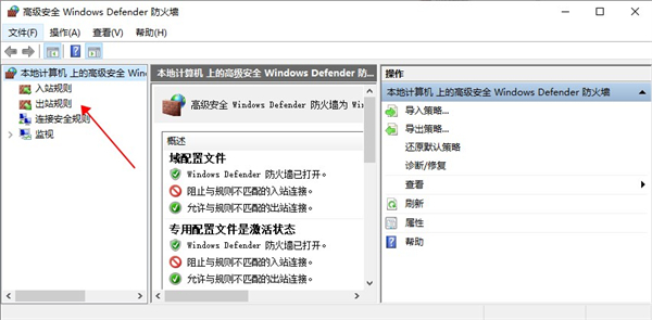 8、在弹出界面,点击出站规则;