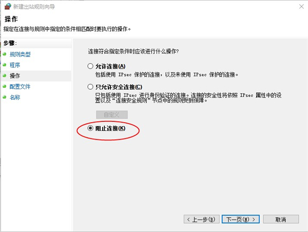 12、选择阻止连接,点击下一页;