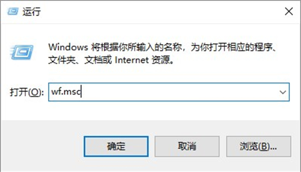 7、win+R打开“运行”对话框,输入wf.msc,点击确定;