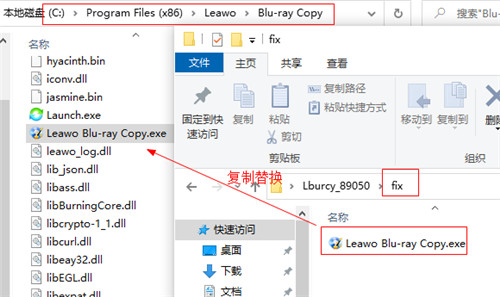 4、接着打开Fix夹将“Leawo Blu-ray Copy.exe”补丁文件复制到软件安装目录中替换即可