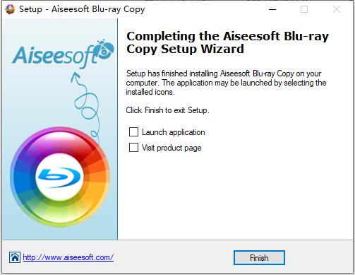 6、弹出如下的Aiseesoft Blu-ray Copy安装成功的提示,取消【launch application】,点击【finish】结束。