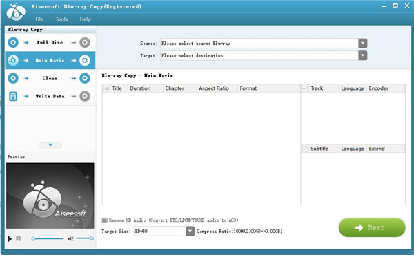 在标题列表区域中,您可以检查主要电影(最长的一个)或另一个要复制为源蓝光的电影。然后,您可以单击“下一步”按钮进入下一个“主电影”窗口。